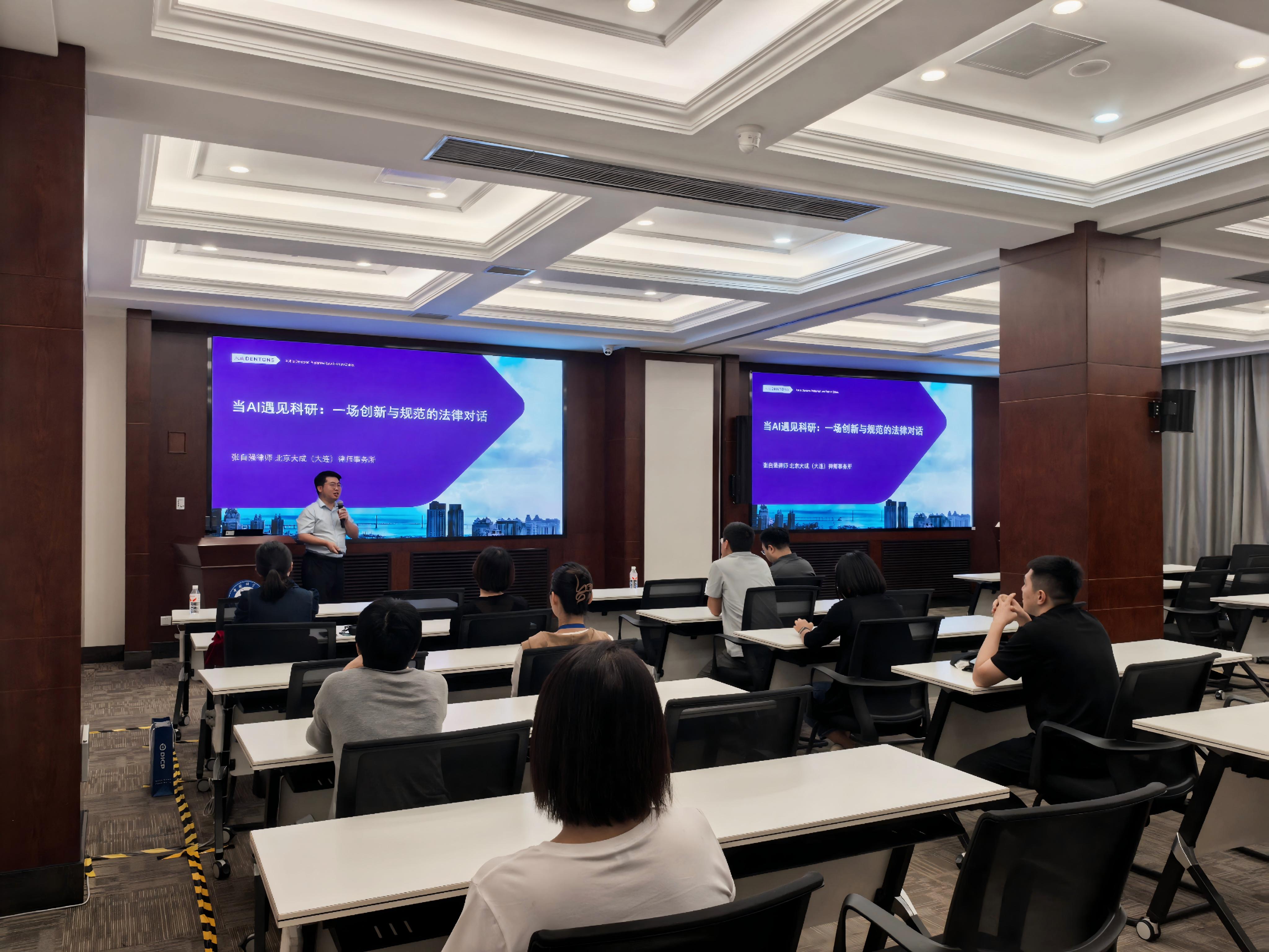 9月23日下午,北京大成(大连)律师事务所合伙人、固本合规团队联合负责人张自强做客我所文化讲坛第205讲,在交流中心第一、二、三会议室作了题为“当AI遇见科研:一场创新与规范的法律对话”的主题报告。所办公室主任关佳宁为张自强颁发了“大连化物所文化讲坛纪念奖牌”。活动由所办公室副主任邹立鼎主持。