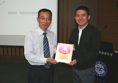 蔡睿代表我所向刘云龙颁发了“大连化物所文化讲坛贡献奖”奖牌。